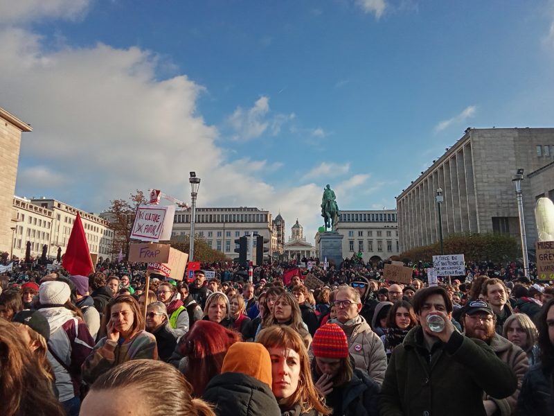 Une mobilisation qui a rassemblé, rien qu’au Mont des Arts, au moins 5000 personnes : des travailleur.euse.s des arts, des fédérations, des associations, des syndicats, etc.